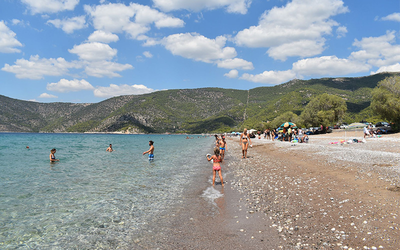 Με μήκος που φτάνει τα 2,5 χιλιόμετρα, καθαρά νερά και εντυπωσιακά ηλιοβασιλέματα, η παραλία της Ψάθας αποτελεί αγαπημένο προορισμό για κολύμπι, βόλτα και χαλάρωση. Η εικόνα της θάλασσας να “αγκαλιάζει” το βουνό δημιουργεί ένα τοπίο που μένει αξέχαστο.